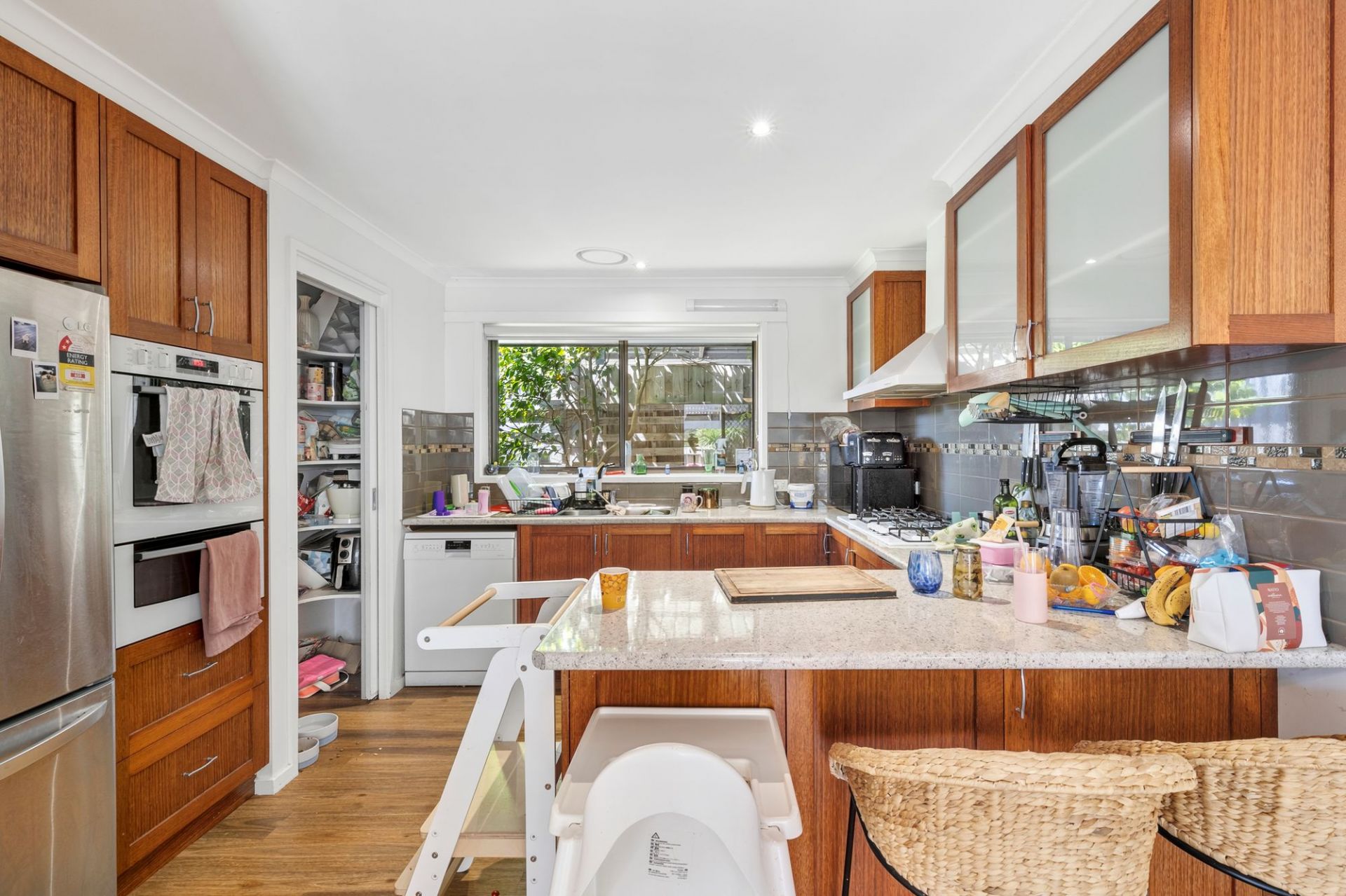 Step inside to a bright and welcoming lounge, where sunlight fills the room while a wood fire and reverse cycle heating and cooling provide comfort year-round. Adjacent, a dedicated study offers the perfect spot for working from home, reading or quiet reflection, adding practicality to family life. The timber kitchen features quality appliances, a breakfast bar and ample storage, flowing effortlessly into the meals area. Here, sliding doors open onto the spacious undercover alfresco deck, ideal for weekend barbecues, casual gatherings or simply enjoying quality time in the great outdoors with the family.