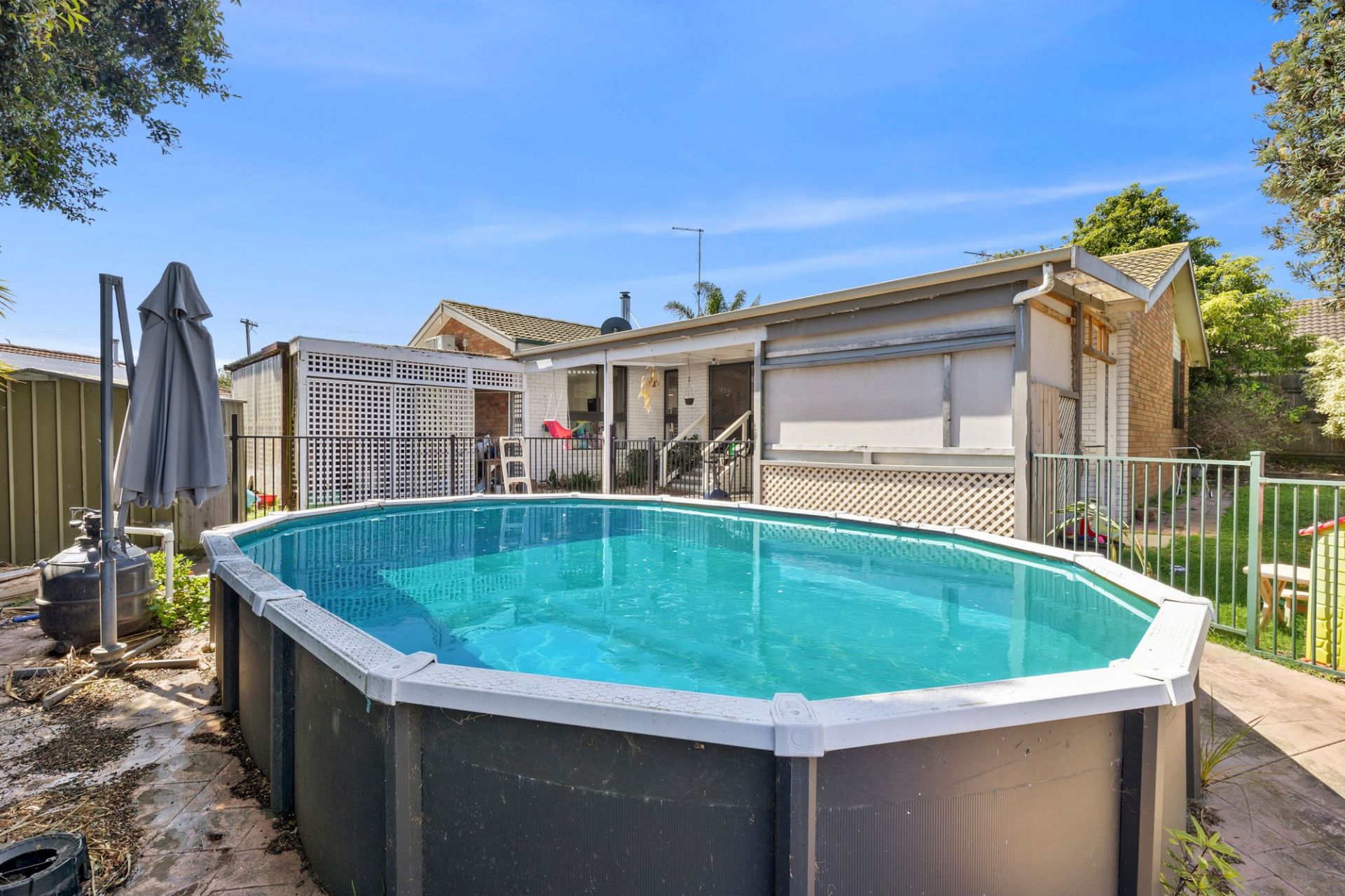 The backyard offers generous space for children to play freely, for hobbies or to relax, complete with a securely fenced swimming pool cementing family fun. The master bedroom is privately zoned and features a walk-in robe and ensuite, while two additional bedrooms with built-in robes share the main bathroom.