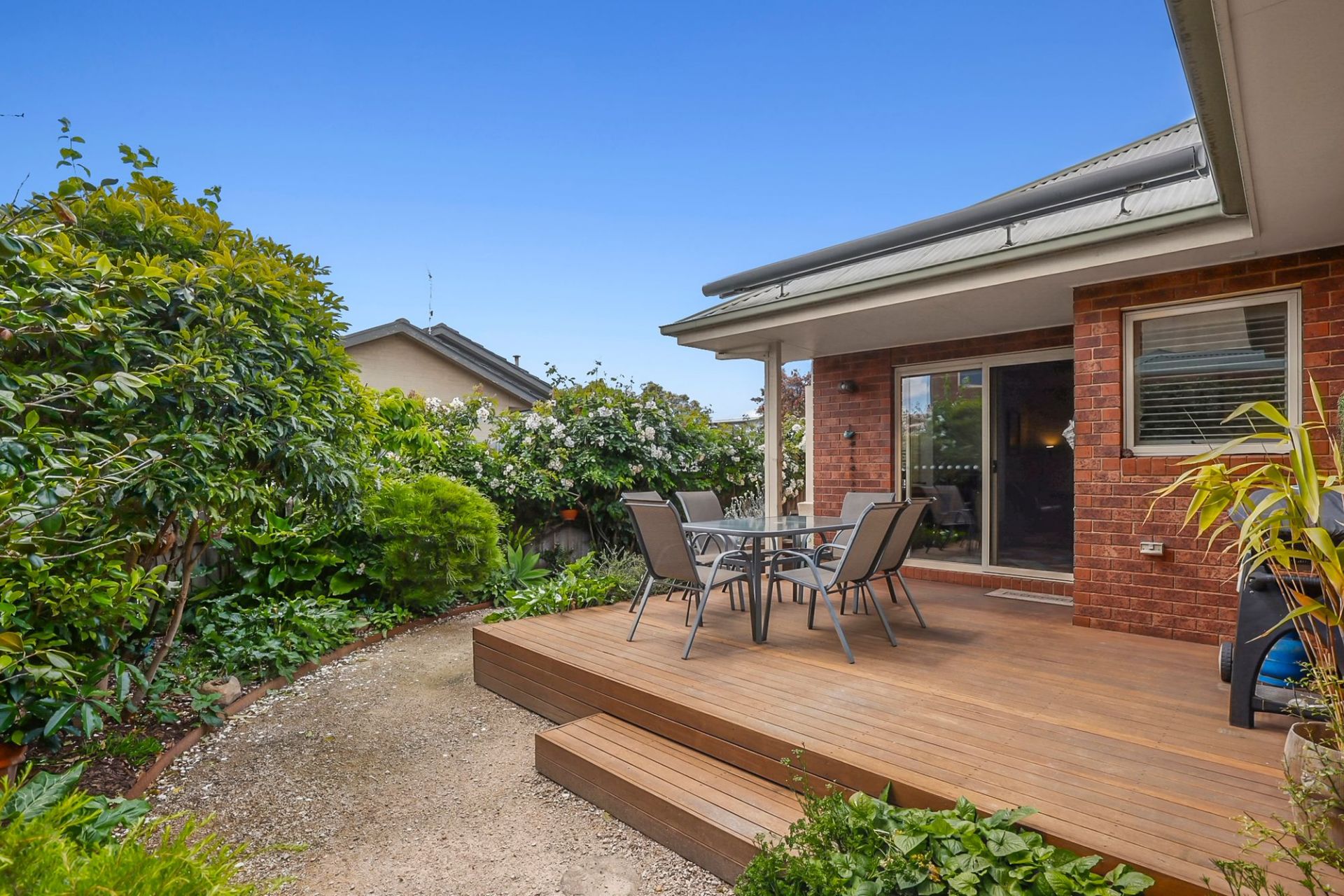 Set on its own title, the home impresses immediately with a fresh interior and soaring high ceilings that enhance the sense of space throughout. Lush, established gardens at both the front and rear create a private, peaceful sanctuary, bringing colour and vibrancy to daily life.