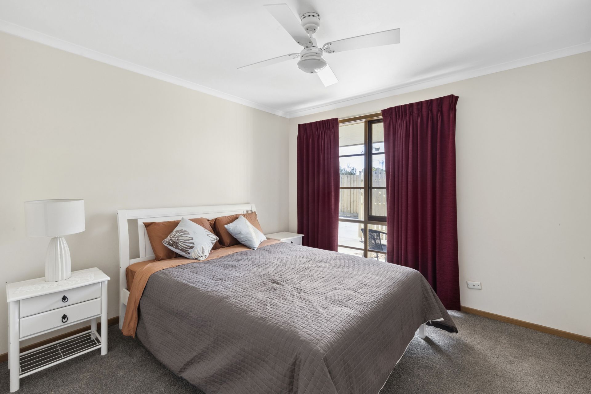 Privately positioned at the rear, the three bedrooms offer restful accommodation, with the main bedroom boasting an ensuite and reverse-cycle unit. The family bathroom is generous in size and complemented by a separate WC for added convenience.